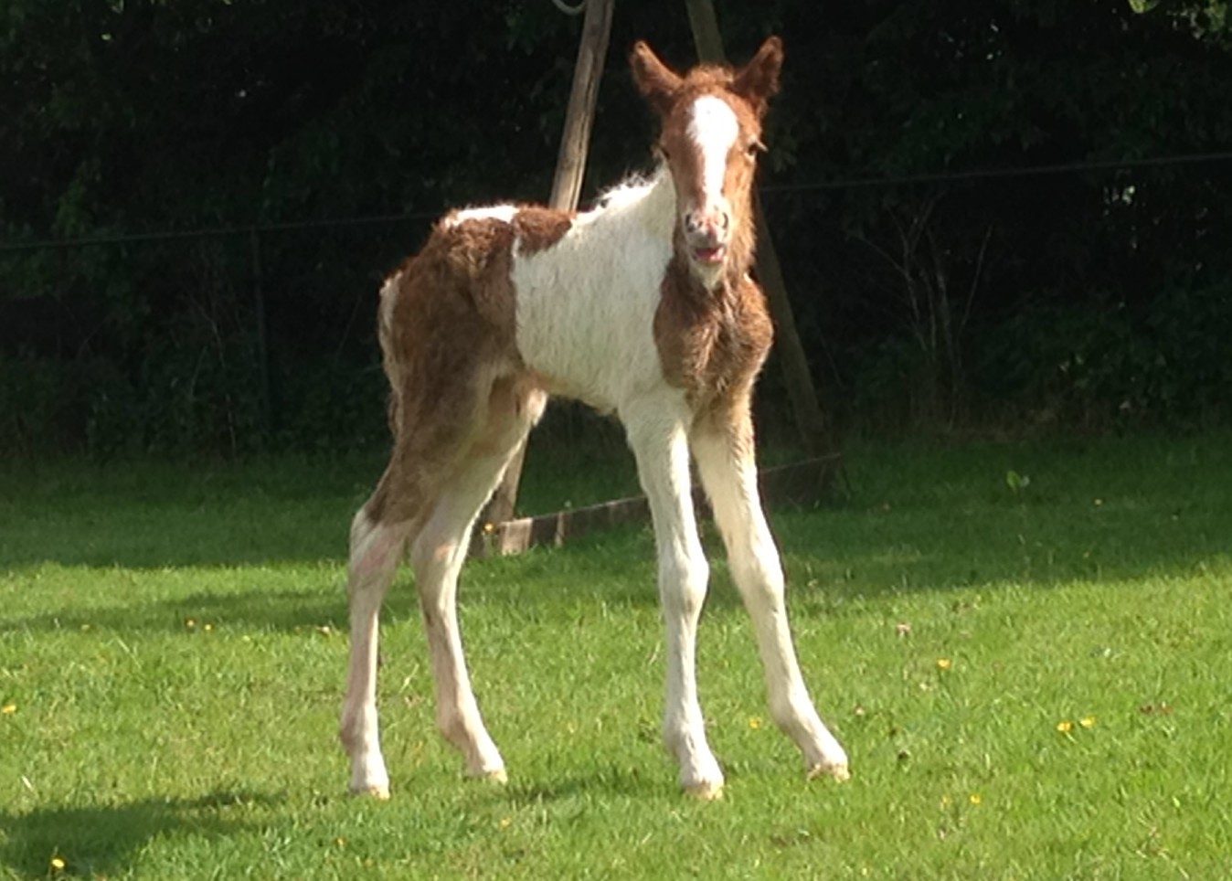 Niet gedacht maar stiekem wel gehoopt dat we een merrieveulen zouden krijgen uit deze combinatie. En wat voor één… Een actief, opgericht en mooi getekend vos-bont merrie veulen. En als kadootje waren de kinderen aanwezig bij de bevalling dus Demi mocht deze keer de naam uitzoeken.