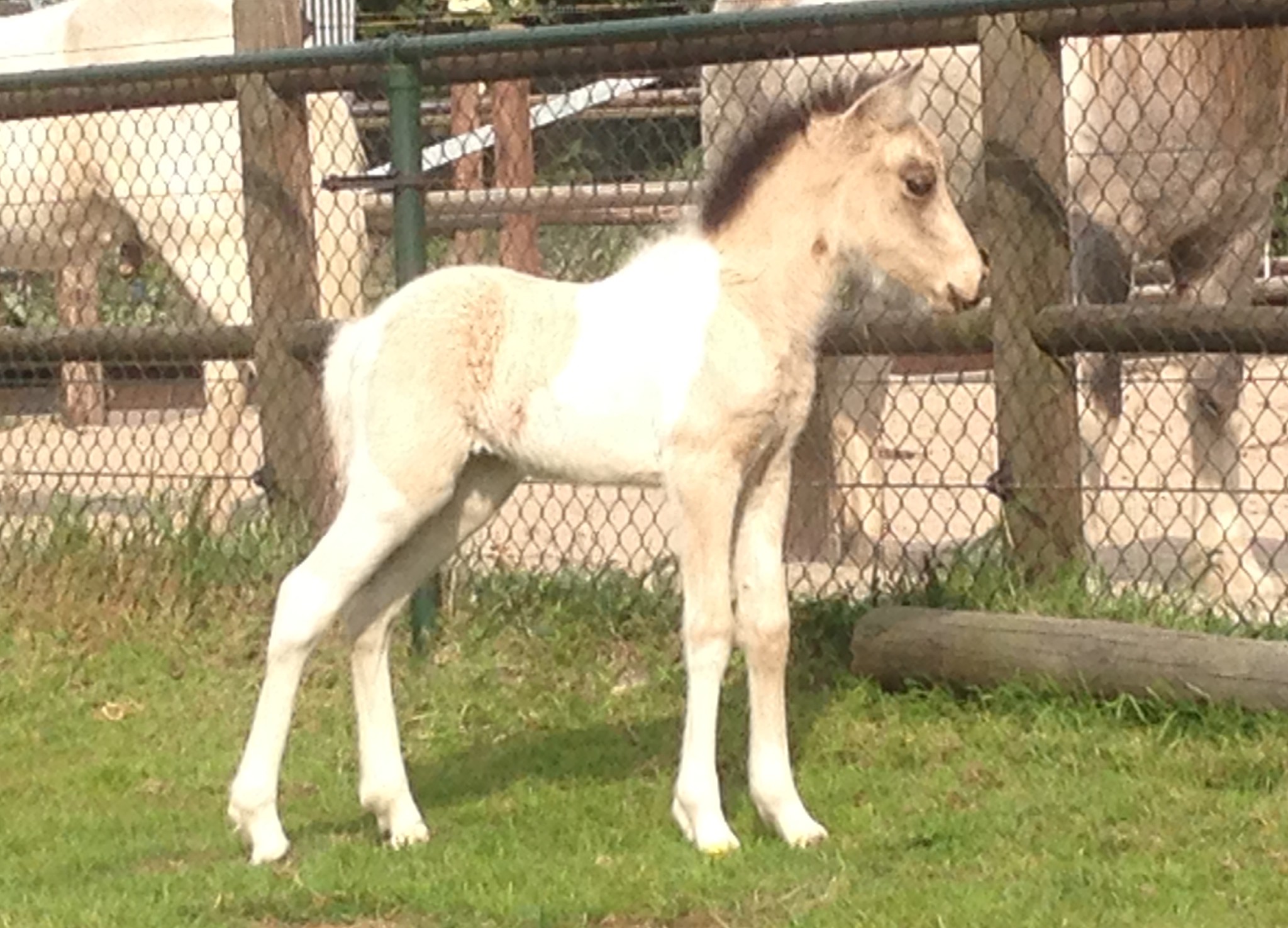 Blij verrast zijn we met de geboorte van deze valk-bonte merrie. Zo’n bijzondere kleur hadden we niet op gerekend en dan nog een merrieveulen uit deze combinatie ook. Dat was een super mooi begin van moederdag voor ons.